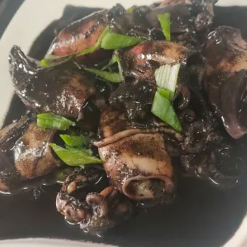 A Filipino favorite! Tender squid simmered in vinegar, soy sauce, garlic, and onions with thick black ink. Bold, tangy, and umami-rich. Paluto-style—“pen” (white cartilage) is not removed as part of our traditional cooking.