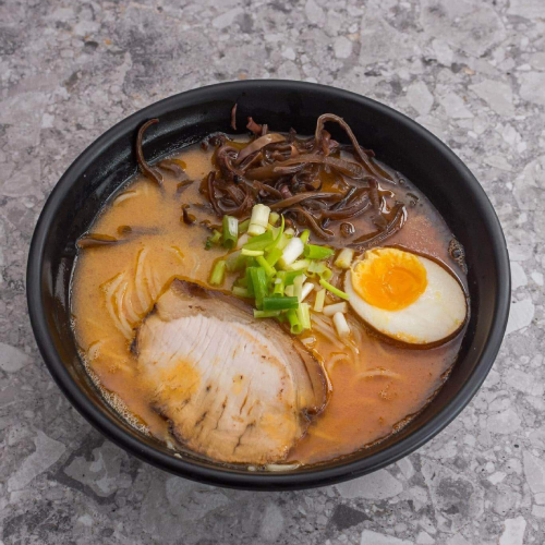Creamy tonkotsu (pork bone) broth enriched with spicy paste or oil, delivering a bold and fiery flavor.