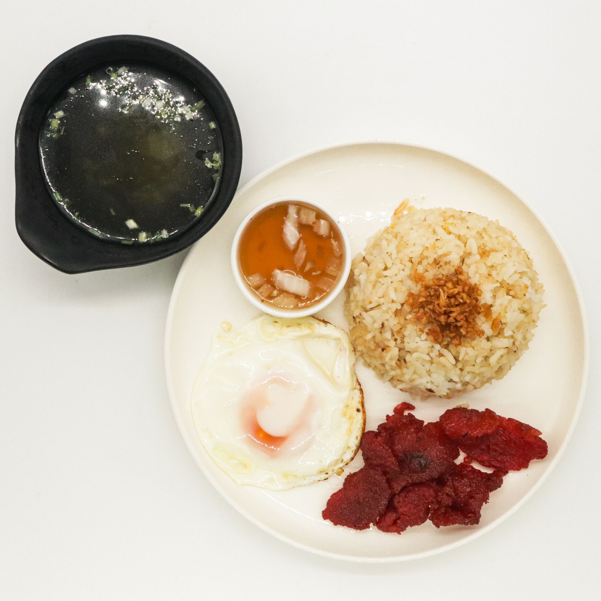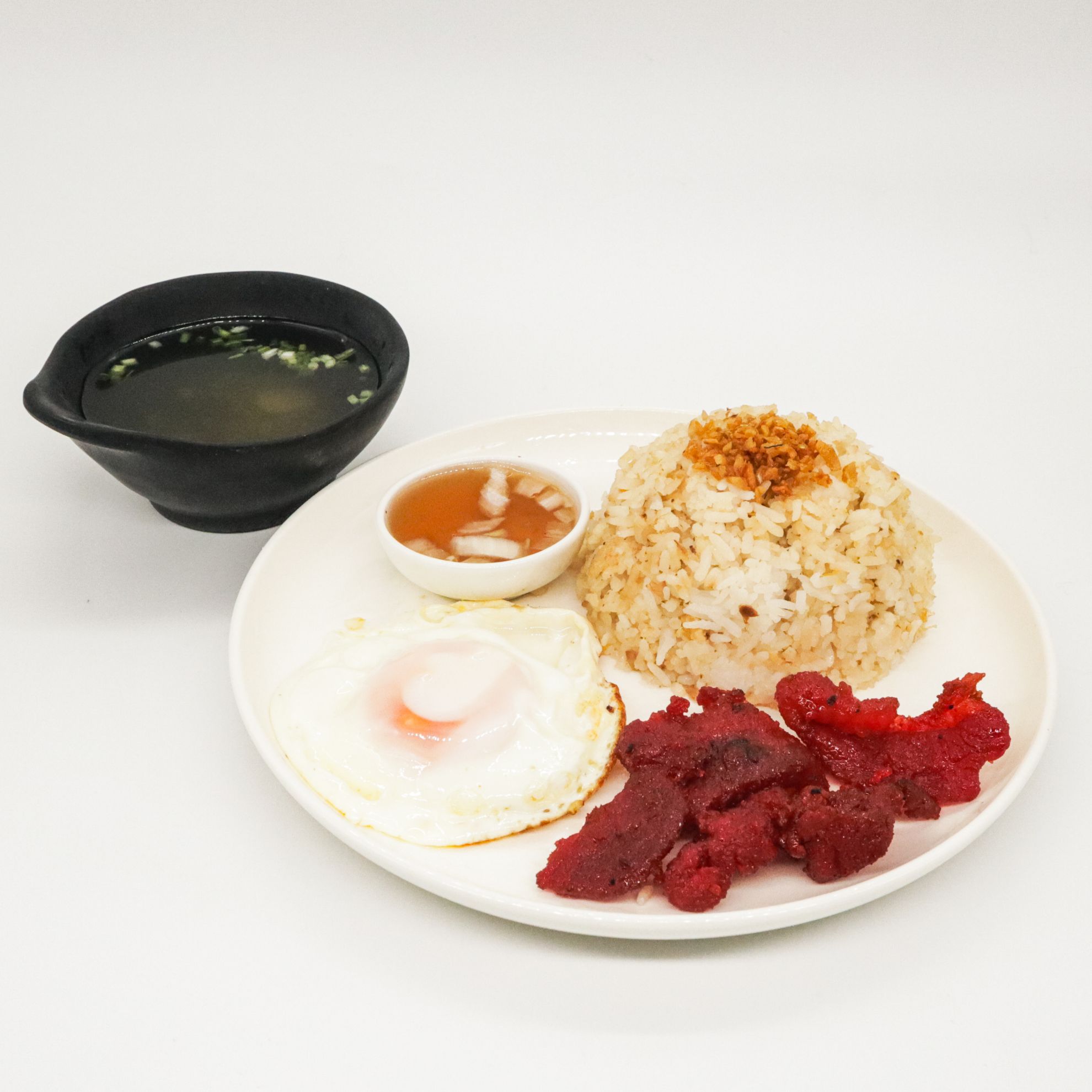 Savory breakfast delight with sweet marinated meat.
