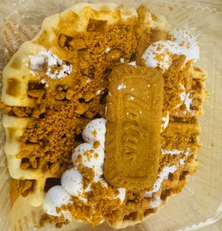 Indulge in the delightful Biscoff Waffle, a crispy-on-the-outside, fluffy-on-the-inside treat infused with the irresistible flavors of Lotus Biscoff.