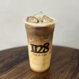 22oz of 1128's black coffee and creamer mixed with our special caramel sauce and drizzled with caramel syrup on the side.