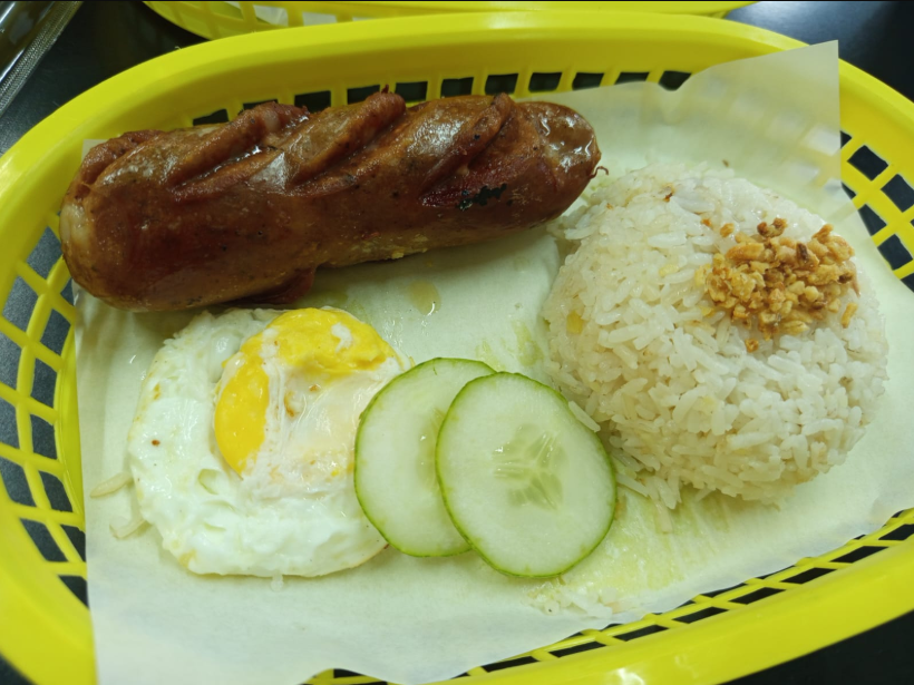 Craving for sausage? Try our Cheesy Hungarian Sausage served with egg and two cups of rice!