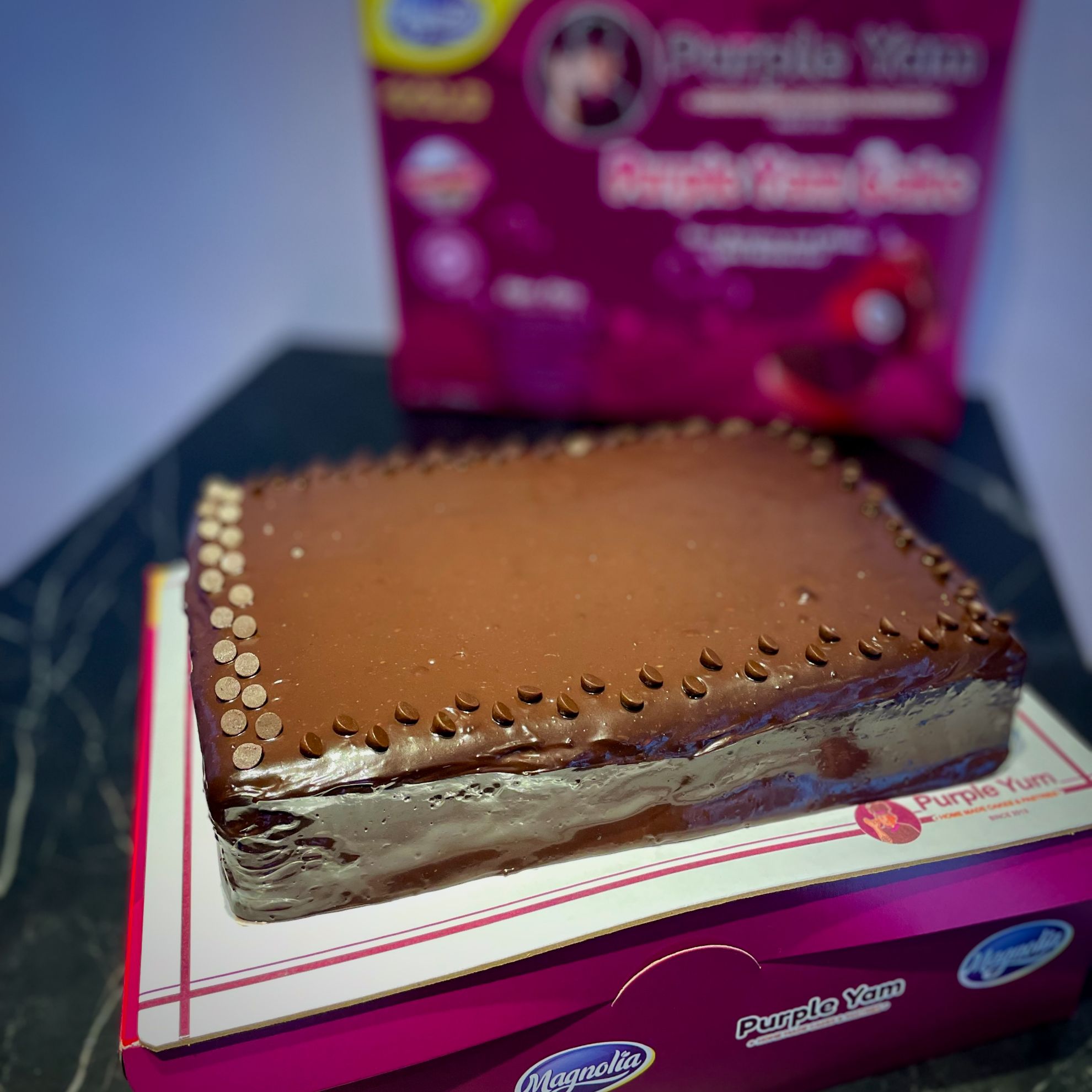 Choco Moist Medium Cake - 7"x10" rectangular dedication cake made of choco-flavored moist cake, covered with sumptuous dark chocolate frosting; serves 12 slices