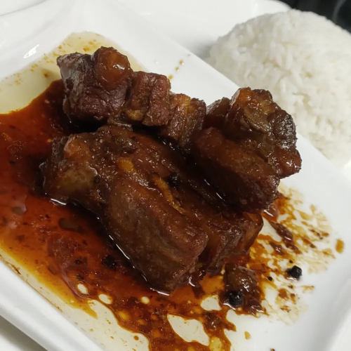 Savor the rich flavors of our Pork Adobo—a Filipino classic. Tender pork marinated in soy sauce, vinegar, and spices, slow-cooked to perfection. Served with steamed rice, this hearty dish promises a harmonious blend of savory and tangy, ensuring a delightful and fulfilling meal experience.