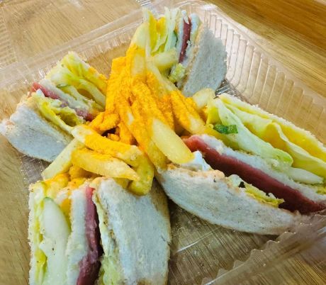The Club Sandwich is a classic triple-decker delight, featuring layers of savory meats, fresh vegetables, and creamy condiments, all held together by toasted bread.