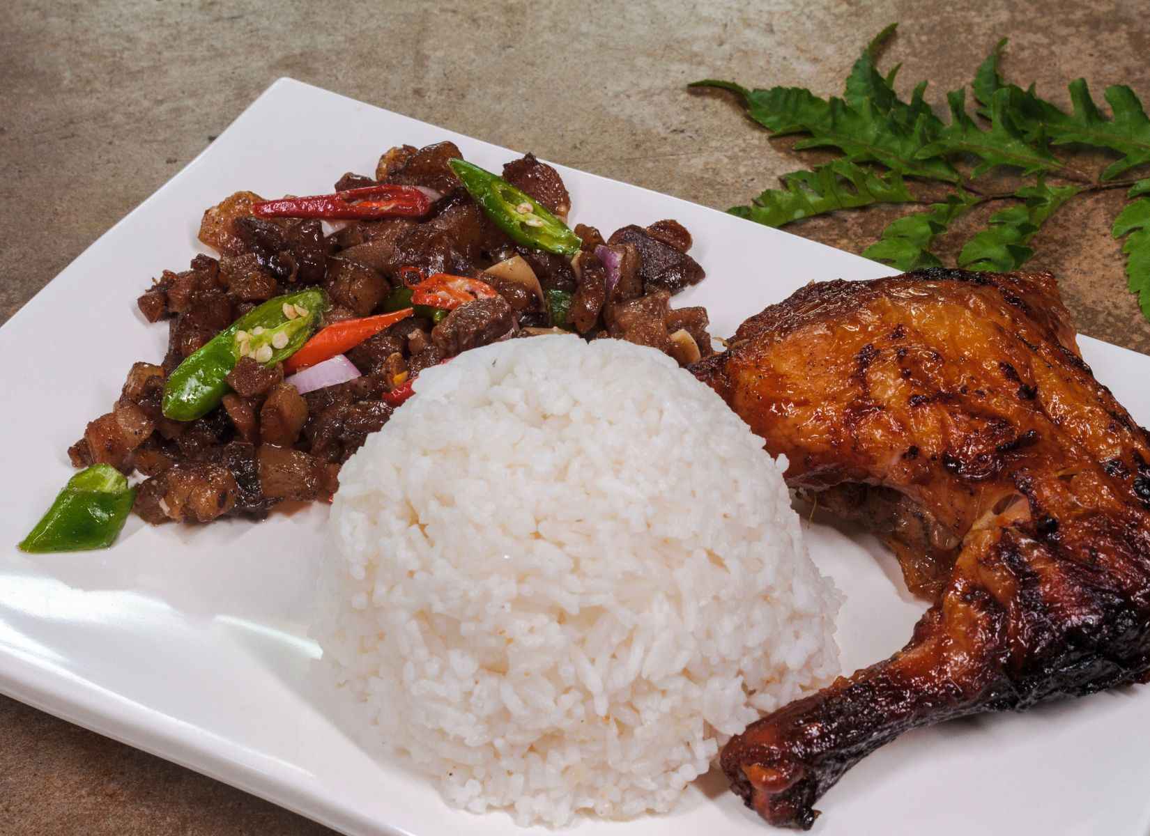 One fourth sweet Lechon Manok, Pork Sisig, Plain Rice.