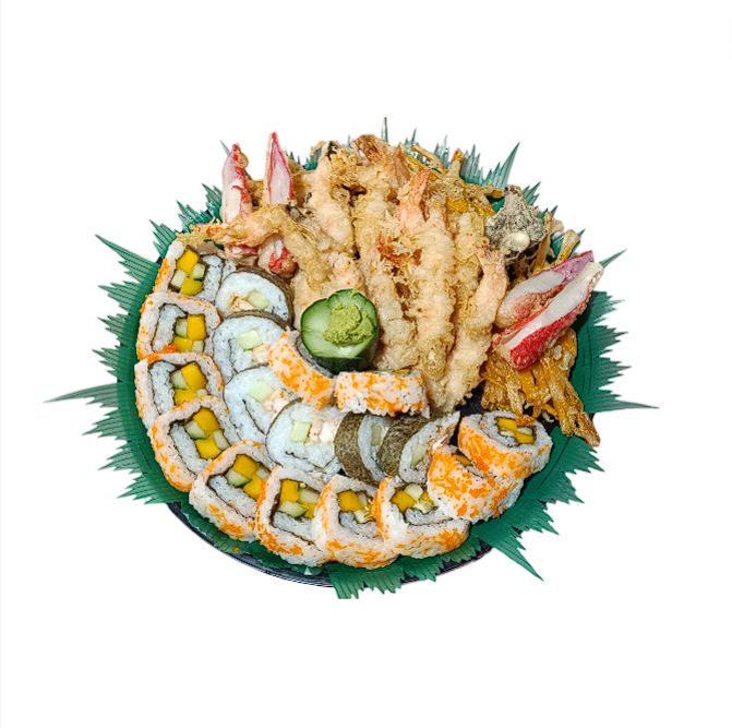 A vibrant feast of fresh sushi, sashimi, and rolls beautifully arranged on a traditional bilao—perfect for sharing and celebrating every bite together!