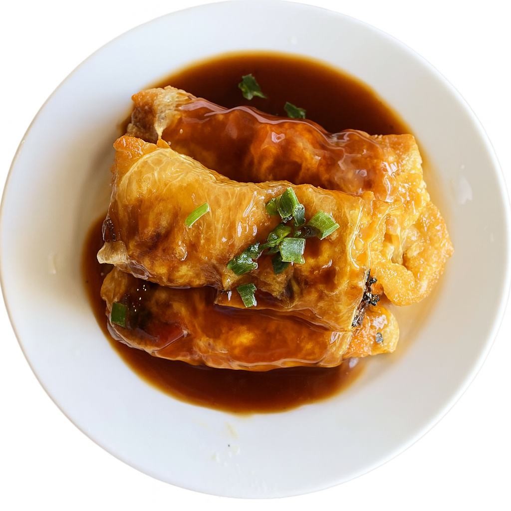 Great — you have 6 pieces of frozen Taopey! This is likely the Filipino-Chinese tofu skin roll (also called topey, tofu roll, or taopey), typically filled with minced pork, shrimp, mushrooms, and vegetables, wrapped in bean curd/tofu skin (tawpe).