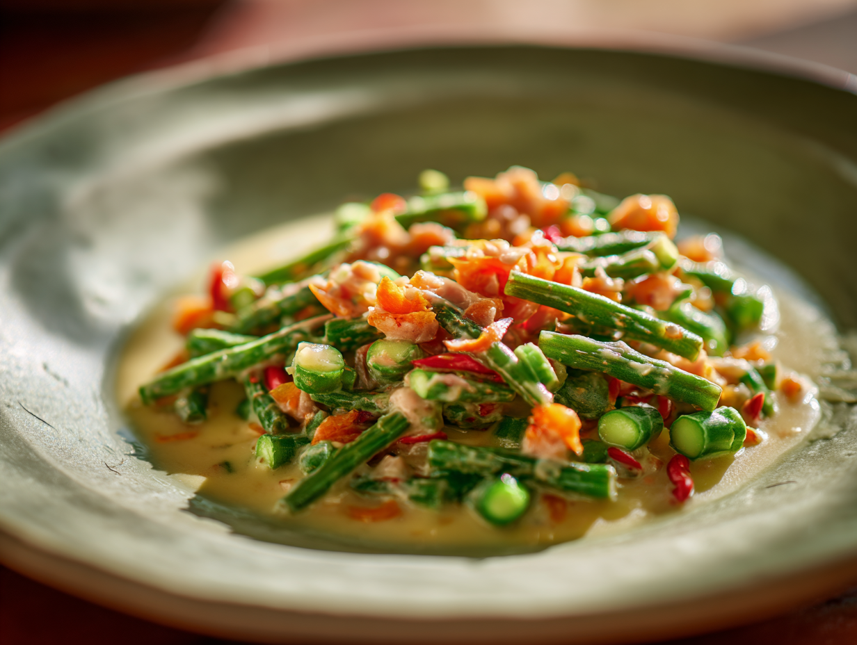 A bold and fiery Filipino favorite, Gising Gising features tender vegetables—traditionally string beans—sautéed in a rich, creamy coconut milk sauce infused with shrimp paste, garlic, and chilies. The dish delivers a perfect balance of savory, spicy, and creamy flavors, with each bite offering a satisfying heat that truly “wakes up” the palate. Deeply aromatic and irresistibly comforting, Gising Gising is a vibrant, flavor-packed dish that pairs beautifully with steaming rice and is guaranteed to excite your taste buds. 🌶️🥥🍽️✨ Servings:  Good for 2-3 pax.