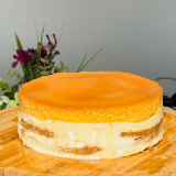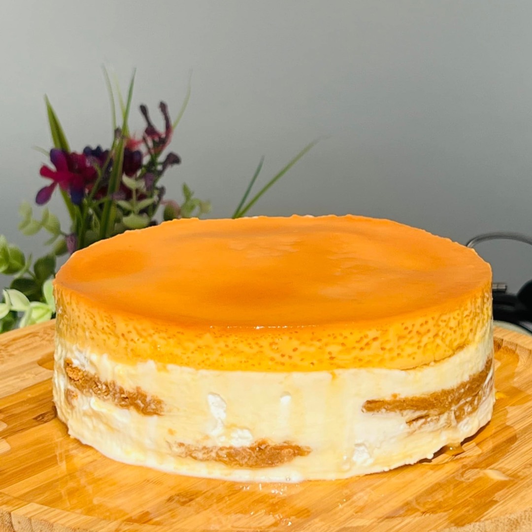 The Graham de Leche (Bento Sized) is a layered dessert featuring graham crackers, creamy filling, and leche flan. It combines the rich taste of leche flan with the texture of graham crackers and cream.