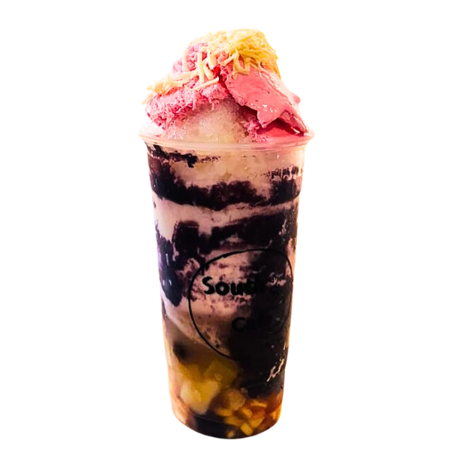 Halo Halo Overload! A vibrant mix of shaved ice, sweet fruits, beans, leche flan, and creamy milk, topped with extra ice cream and crunchy treats for a refreshing summer delight!
