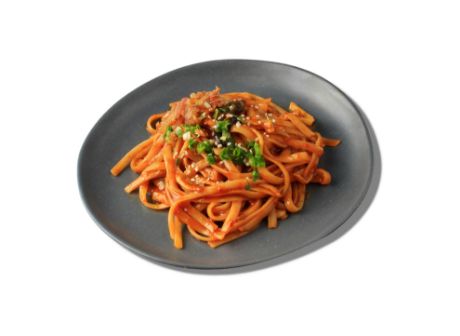 A Chigue exclusive! Pasta made with kimchi, Korean paste, and other secret ingredients topped with bacon bits and cheese.