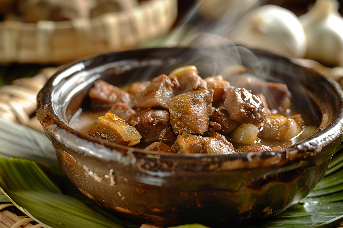 Lechon pork; vinegar; liver sauce; garlic; onion; bay leaf