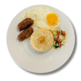 Sweet and savory Filipino sausage paired with garlic rice and egg for a hearty start.