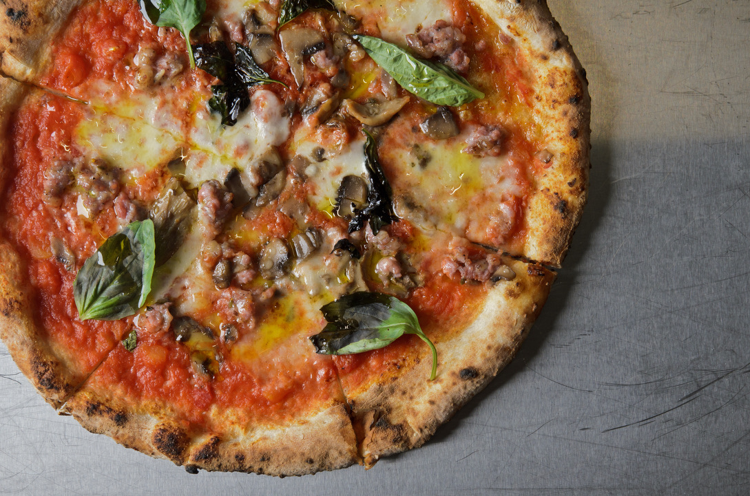 Our Margherita al Salsiccia e Funghi pizza is the perfect fusion of hearty and fresh flavors. Built on a crisp golden crust, it’s layered with rich tomato sauce, creamy mozzarella, and fragrant basil, then generously topped with savory Italian sausage and earthy mushrooms. The result is a well-balanced pizza — meaty, aromatic, and irresistibly satisfying. A true Italian comfort food for every pizza lover.