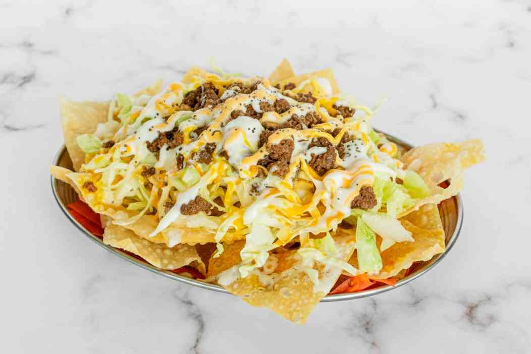 Crunch into layers of crispy, golden chips piled high with ooey-gooey melted cheese, zesty jalapeños, fresh salsa, and the perfect dollop of creamy guacamole.