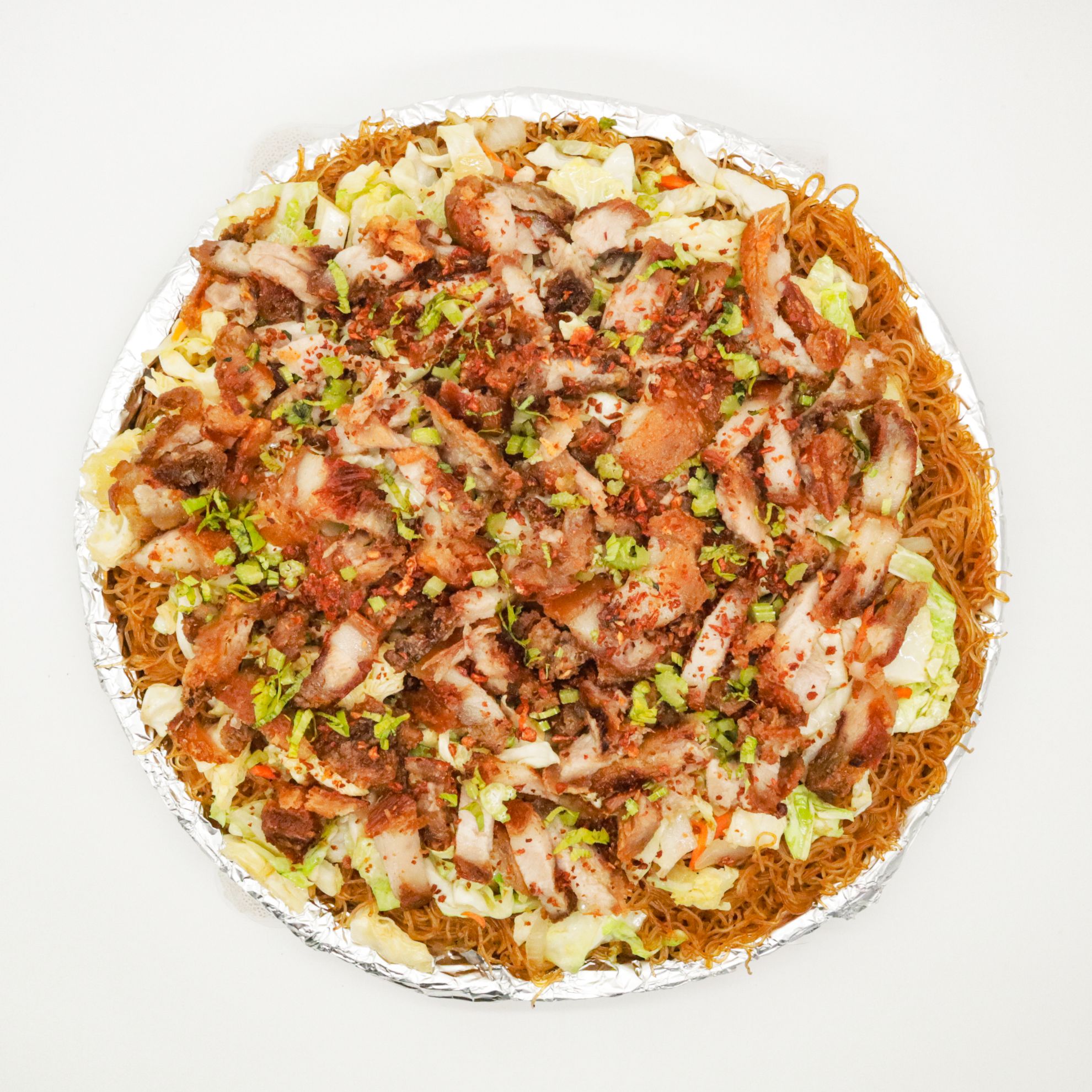 A favorite Pinoy dish topped with crispy lechon kawali and veggies.
