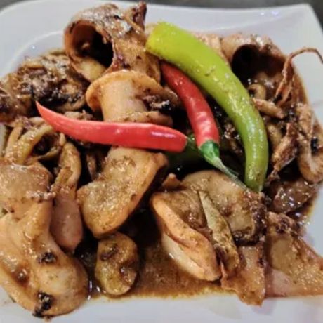 Tender squid simmered in rich, creamy coconut milk with a hint of chili, garlic, and ginger. Perfectly balanced with a touch of sweetness and spice.