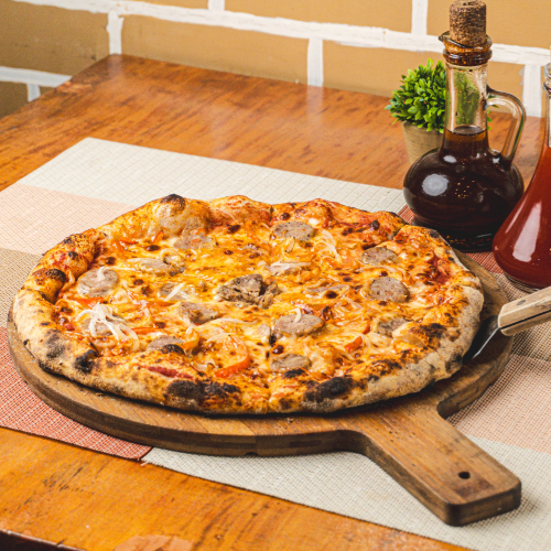 A savory delight from our fresh homemade sausages, mozzarella, onions and bell peppers