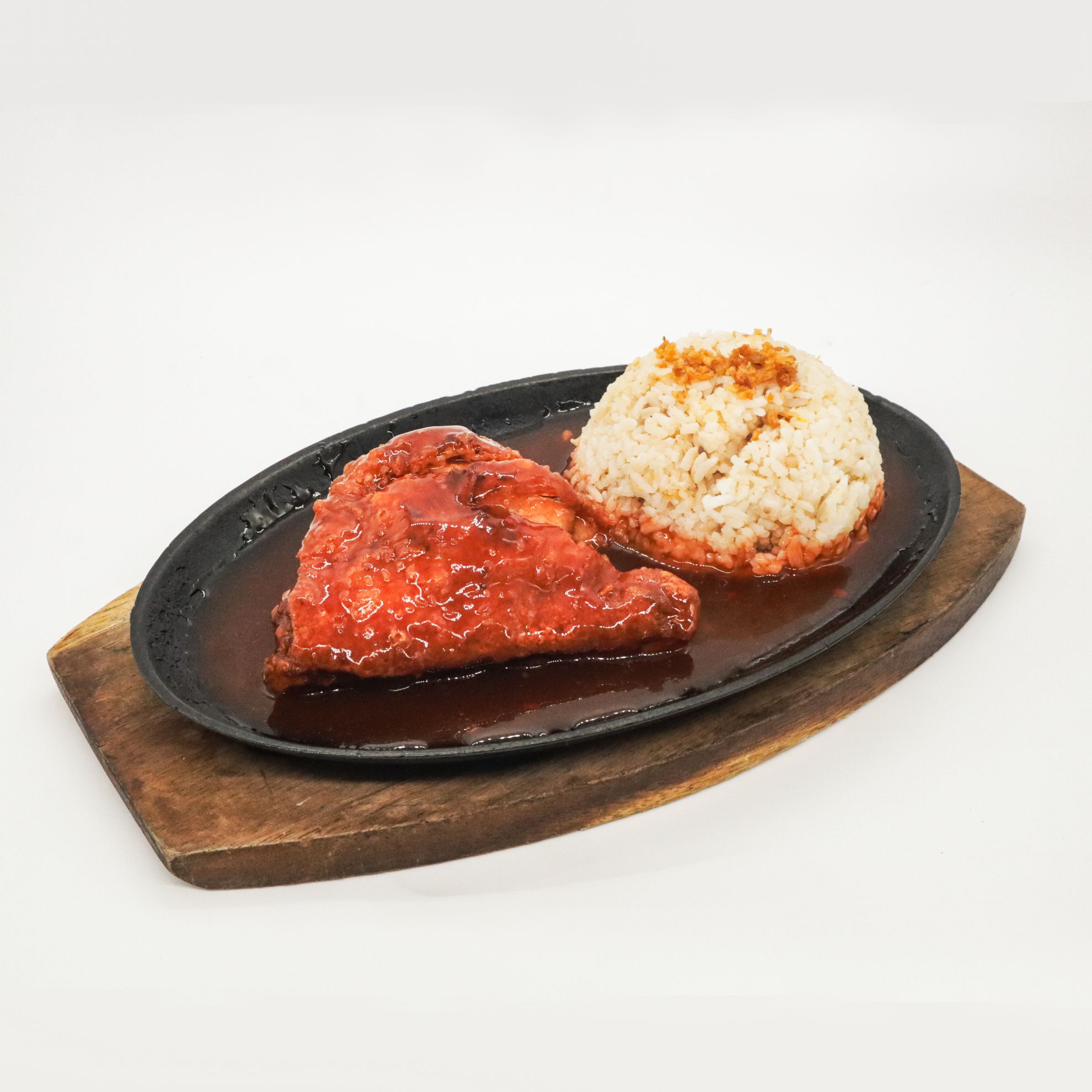 Treat yourself to the mouthwatering goodness of Sizzling Chicken, a well-loved Filipino dish served fresh on a hot plate. Each piece of chicken is perfectly grilled for that juicy, smoky flavor, then topped with rich, savory sauce for a satisfying meal experience.