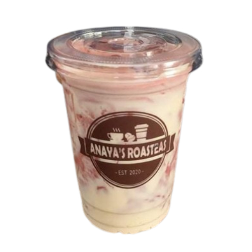 Strawberry milk tea flavor with boba and cream cheese walling