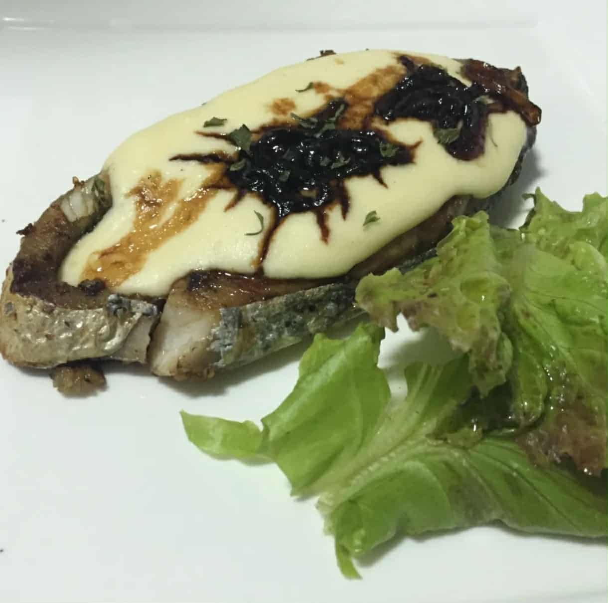 Enjoy tender grilled tangigue steak seasoned with bold spices and herbs—perfectly cooked for a hearty seafood main course.