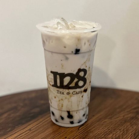 Mix of black tea, creamer, taro powder and black tapioca pearls.