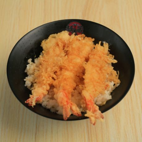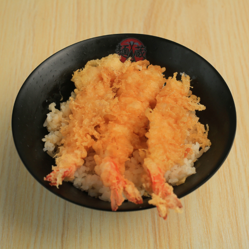 A bowl of steamed rice topped with a generous assortment of crispy tempura—shrimp, vegetables, and fish—drizzled with a savory-sweet tentsuyu sauce. Light, crunchy, and deeply satisfying.