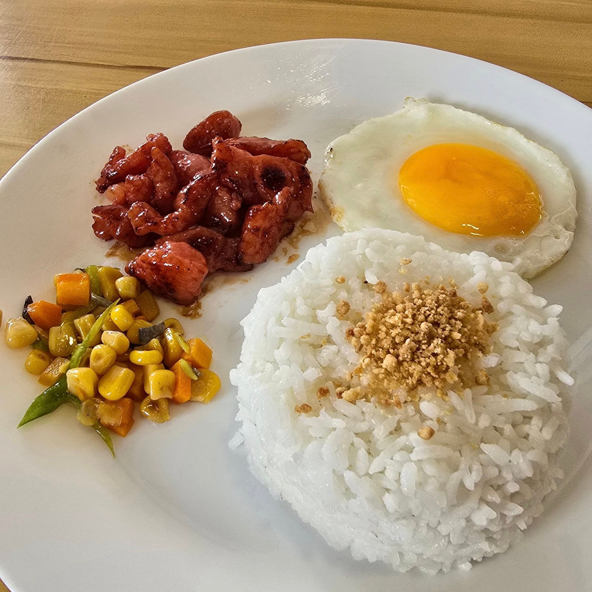 Start your day the Filipino way with Tocilog — savory sweet tocino, fragrant garlic fried rice, and a perfectly fried egg!
