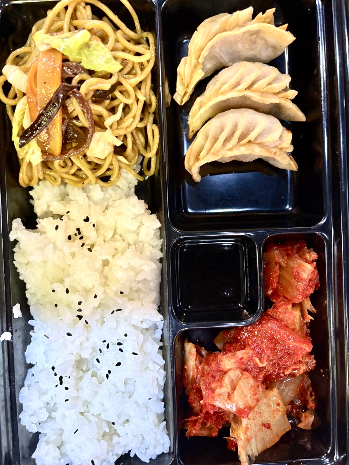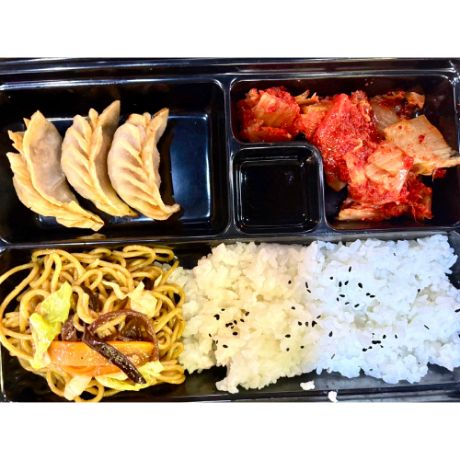 Flavorful stir-fried yakisoba noodles with veggies served alongside crispy pan-fried gyoza dumplings. Comes with a side of dipping sauce, and kimchi for a perfect meal combo.