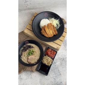 Flavorful stir-fried yakisoba noodles with veggies served alongside crispy pan-fried gyoza dumplings. Comes with a side of dipping sauce, and kimchi for a perfect meal combo.