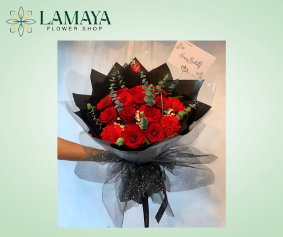 12 vibrant China roses, beautifully presented in a round bouquet style. Perfect for celebrating special moments or expressing heartfelt sentiments, this classic design is a lovely choice for any occasion.
