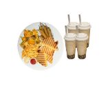 4 Medium Milktea, Nachos, 2 Grilled Cheese Sandwich with Fries and A Choice of : Lumpia, Dynamite or Cheese Sticks) and Fries.