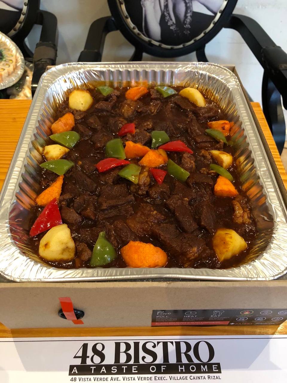 Beef Mechado is a classic Filipino tomato-based beef stew known for its deep, savory flavor and tender beef cuts. Simmered slowly in tomato sauce with garlic, onions, soy sauce, bay leaves, and a hint of calamansi or vinegar, it often includes potatoes, carrots, and bell peppers. This comforting dish is perfect for sharing (serves 2–3) or scaling up for party trays. Whether for family meals or special occasions, Mechado is a Filipino favorite that never fails to satisfy.