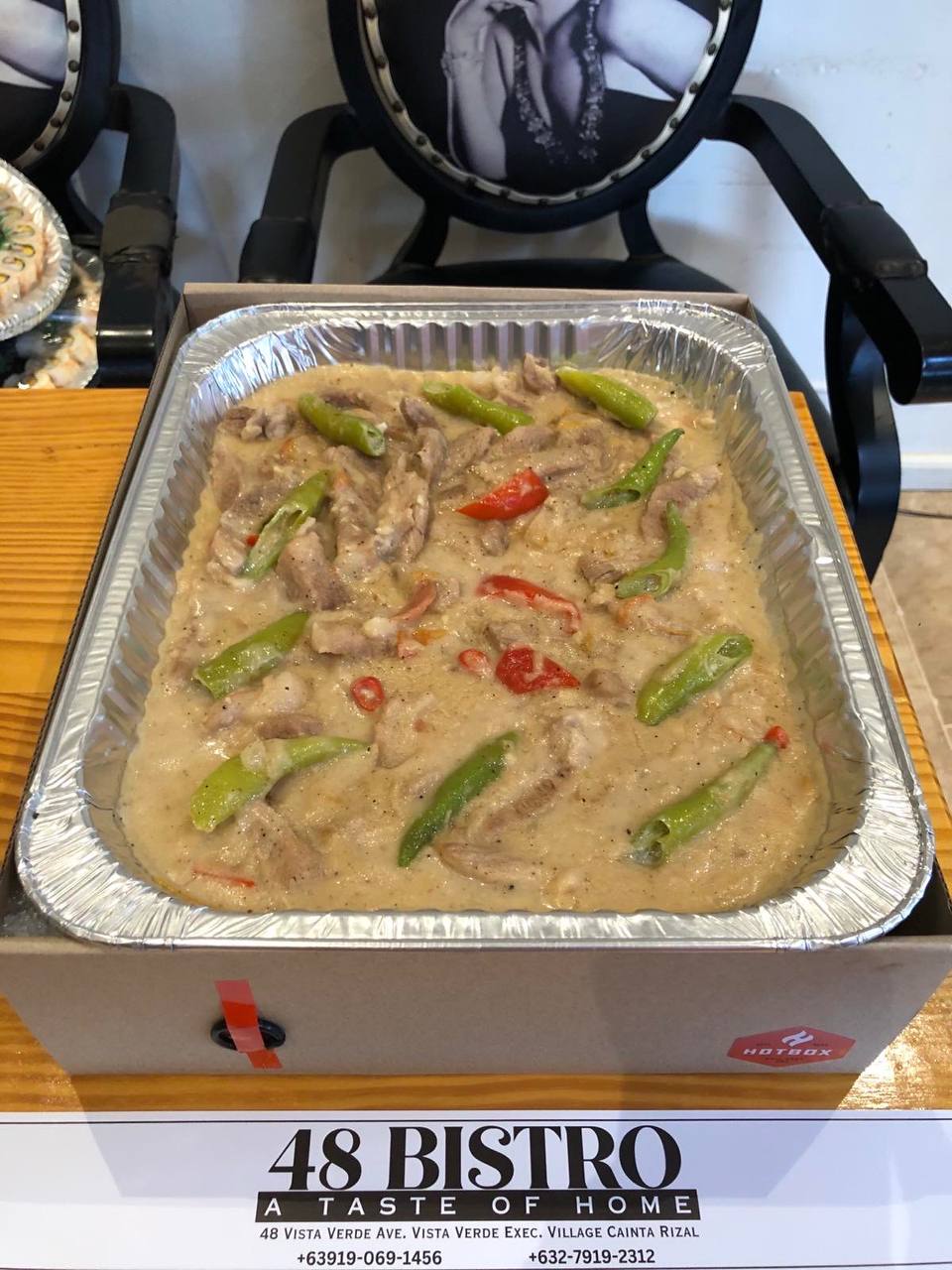 Share the bold flavors of the Philippines with our Bicol Express for Sharing. This hearty dish features tender pork pieces slow-cooked in rich coconut milk, shrimp paste, garlic, onions, and fresh chilies for just the right balance of heat and creaminess. Made for group enjoyment, this sharing-sized serving is perfect for family lunches, barkada dinners, office potlucks, or small celebrations. Just pair it with steamed rice and you’ve got a satisfying meal everyone will love. Available in sizes good for 2–4 or 5–8 people.