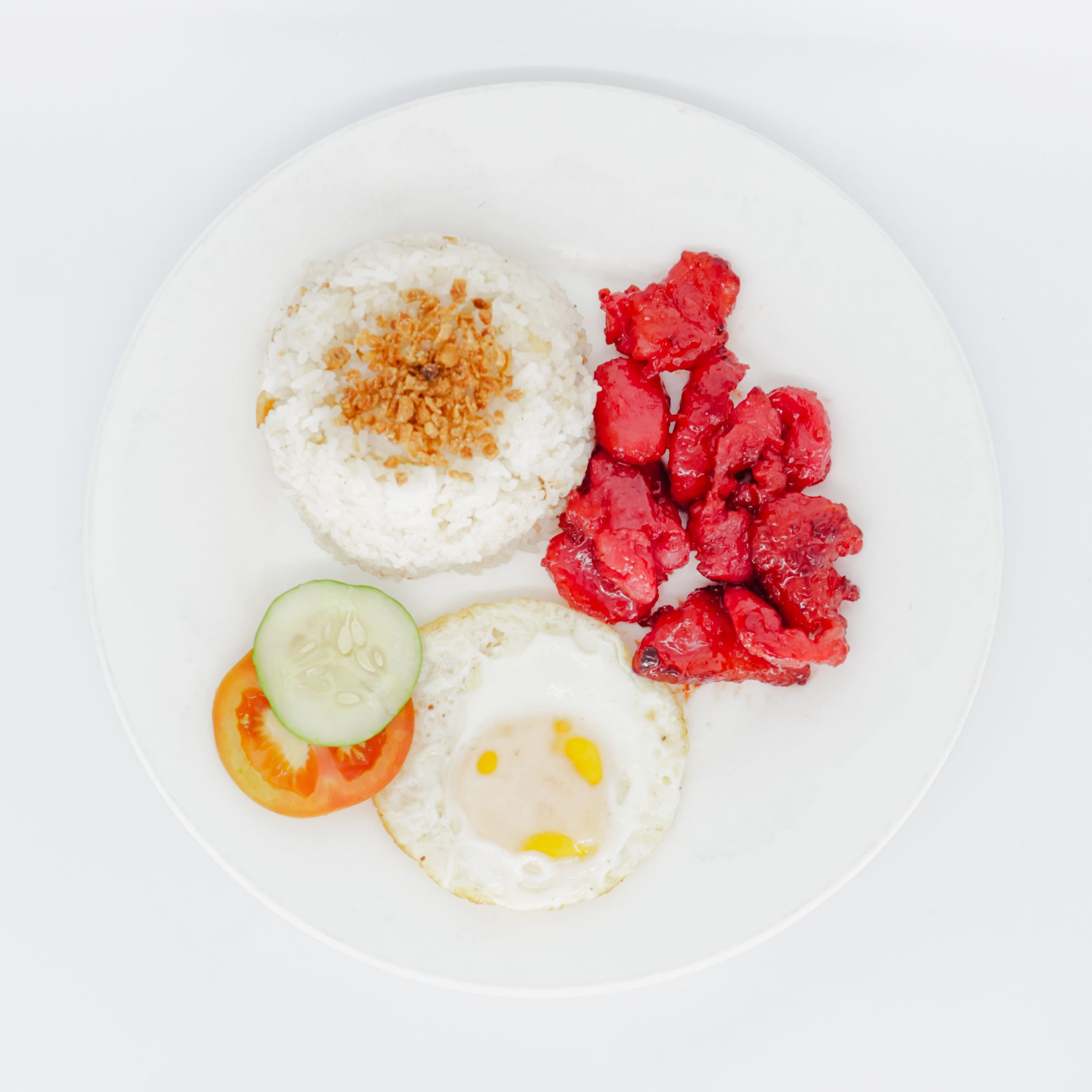 Indulge in the Filipino classic Tocilog — tender, sweet, and savory pork tocino paired with garlic fried rice and a sunny-side-up egg. A comforting silog meal that’s perfect any time of the day.