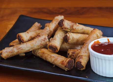 12 Pieces Spring roll made of chicken filling wrapped in thin crepes called lumpia wrappers.