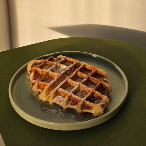 Made by pressing a croissant dough in a waffle iron, this golden-brown delight is light, airy, and irresistibly crunchy, with just the right hint of sweetness. It’s perfect on its own or served with your favorite toppings like butter, syrup, or a dusting of powdered sugar.