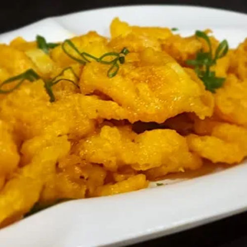 Indulge in our exquisite Golden Squid with Salted Egg—a crispy delight infused with rich salted egg flavor, perfect for satisfying your seafood cravings.