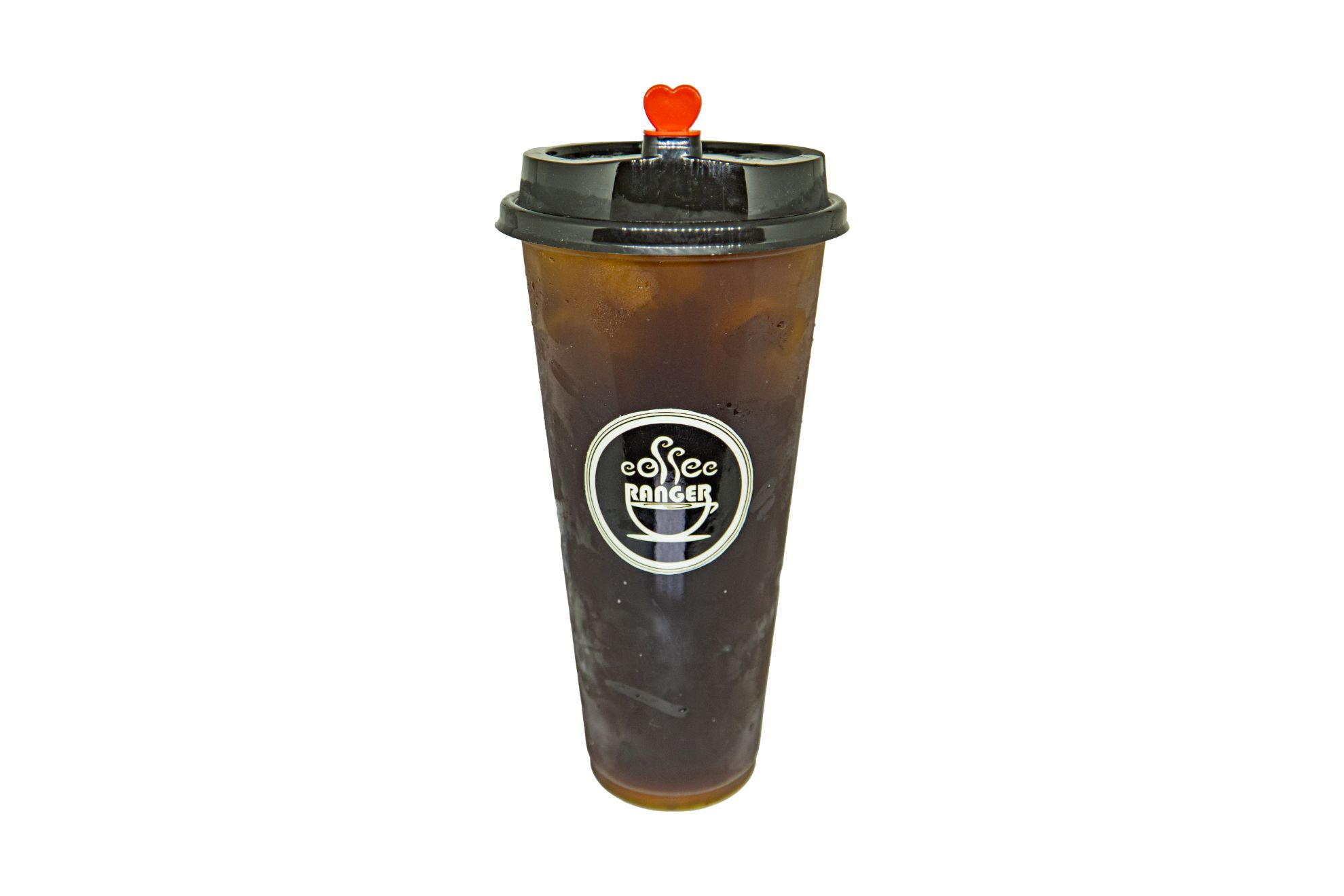 Unleash the intense rush of our iced Americano, a straight-up espresso chill that's black, bold, and beautifully balanced.