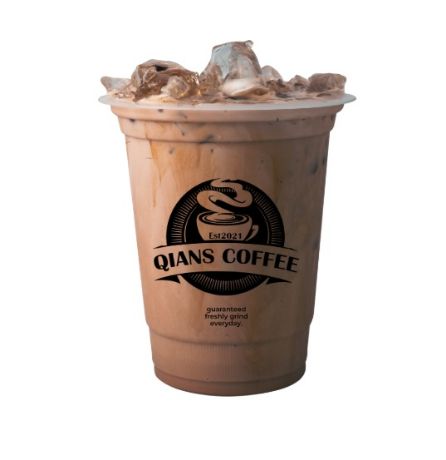 rich, creamy blend of coffee and chocolate, combining bold espresso or brewed coffee with decadent chocolate flavors, served chilled over ice.