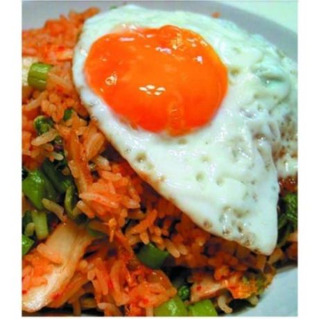 Uniquely-cooked Indonesian fried rice with Egg. generously strewn with diced shrimps, Chicken and Beef.