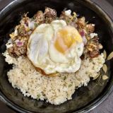 A crunchy and flavorful twist on the classic sisig, served with garlic rice and a zing of calamansi.