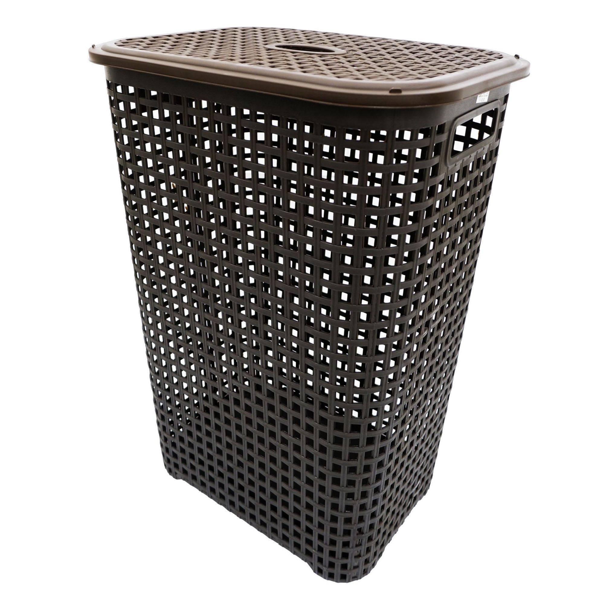 Tall Woven Laundry Basket with Cover (Matte Gray)