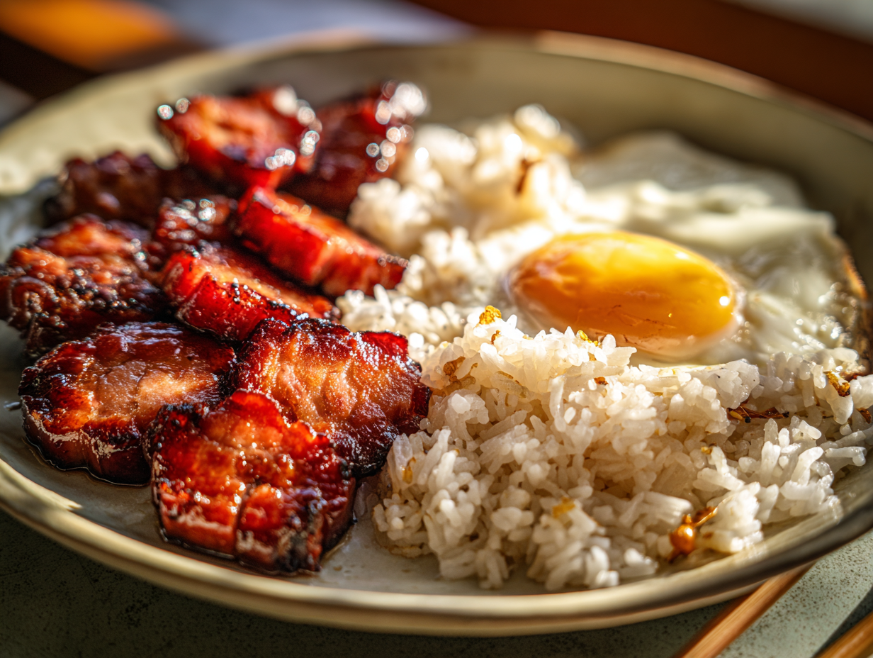 A beloved Filipino breakfast favorite, Tocilog features tender slices of pork tocino marinated in a sweet, garlicky blend, then pan-fried until beautifully caramelized and slightly sticky. The meat is juicy and flavorful with a perfect balance of sweetness and savory notes. Served with fragrant garlic fried rice and a perfectly cooked egg, the rich yolk adds a creamy finish that brings every bite together. Comforting, satisfying, and irresistibly delicious, tocilog is a classic silog meal that’s perfect any time of the day. 🍳🍚🐖✨