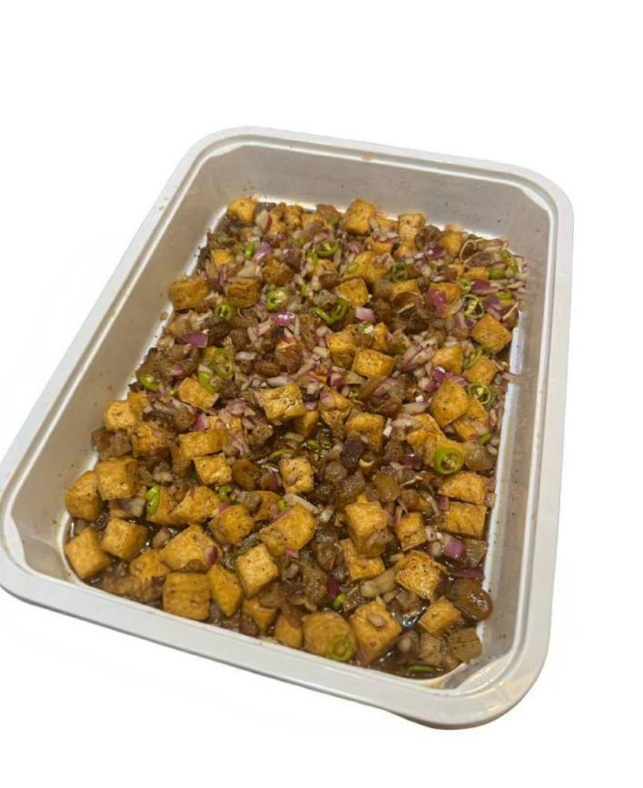 Our Tokwa’t Baboy for Sharing is a Filipino favorite that brings together golden fried tofu and tender slices of pork (usually pork belly or ears), served with a flavorful soy sauce and vinegar dressing mixed with onions, garlic, and chili. It’s a perfect balance of crispy, chewy, tangy, and savory in every bite. Often enjoyed as a starter or pulutan (bar chow), this tray is great for barkada meals, family feasts, or party appetizers. Best served chilled or at room temperature, and pairs perfectly with beer or rice!