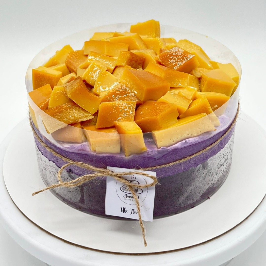 The Ube Flan Cake (Bento Sized) is a miniature version that combines creamy leche flan and fluffy ube cake. It is a unique combination of flavor in every slice.