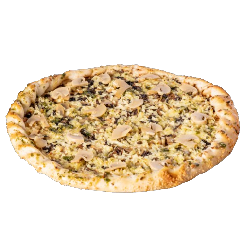 Assorted mushrooms marinated in white wine vinegrette herbs and spice transformed in a glacious form of pizza.